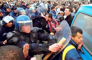 حاصرت قوات مكافحة الشغب الجزائرية وسط العاصمة لمنع مسيرة ثانية غير مرخصة دعت اليها التنسيقية الوطنية للتغيير والديموقراطية للمطالبة "بتغيير النظام"، بعد منع مسيرة السبت الماضي. وقال عضو التنسيقية خليل مؤمن ان عشرة اشخاص اصيبوا بجروح امس اثنان منهم حالتهما خطيرة، هما النائب عن التجمع من اجل الثقافة والديموقراطية طاهر بسباس ومتظاهر ضربه شرطي على وجهه.