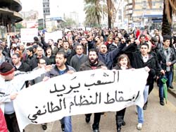 وتقدم التظاهرة عدد من الاعلاميين وبعض الاسرى المحررين من المعتقلات الاسرائيلية وآخرون من منظمي الاعتصامات الاخيرة التي شهدتها مناطق لبنانية تضامناً مع التحركات الاحتجاجية في مصر وتونس والبحرين وليبيا واليمن، ورفع هؤلاء لافتة ضخمة عليها شعار التظاهرة الاساسي: "الشعب يريد اسقاط النظام ويطالب بالعدالة الاجتماعية والمساواة".