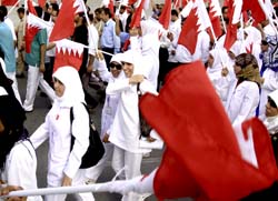 وقال مشيمع انه مهتم باجراء محادثات مع جماعات معارضة اخرى مثل "حركة الوفاق" لكنه لم يشر الى المطالب المشتركة المحتملة. واحتشد عشرات الآلاف من الناس في شوارع المنامة الجمعة الماضي معلنين "يوم حداد" تبنته الحكومة في واحدة من كبرى التظاهرات منذ "يوم الغضب" في 14 شباط. (رويترز، و ص ف، أ ب)