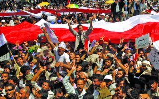 أثار انهيار مبادرات الحل السلمي لحركة الاحتجاجات المطالبة بسقوط النظام في اليمن وتنحي الرئيس علي عبدالله صالح وأفراد عائلته عن السلطة قلقا محليا ودوليا وسط مخاوف من الانزلاق إلى مربع العنف نتيجة تصاعد الاحتجاجات التي استمرت أمس في عشر محافظات وتحولت في محافظات عدن وإب والضالع مواجهات بين الموالين والمناهضين للنظام من جهة، والمحتجين والشرطة من جهة أخرى أوقعت 61 جريحاً.