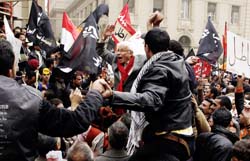 في غضون ذلك تظاهر أمس نحو 600 معارض مصري أمام دار القضاء العالي في وسط القاهرة احتجاجاً على ما تصفه المعارضة «تلاعباً وتزويراً لنتائج الاقتراع». وشارك في التظاهرة، التي دعت اليها الحركة المصرية من اجل التغيير (كفاية) أحزاب وقوى المعارضة، بينها قيادات حزب الوفد المعارض الذي أعلن انسحابه من الجولة الثانية للانتخابات، كما ضمت اعضاء في احزاب الجبهة الديموقراطي والعربي الناصري والكرامة (تحت التأسيس) والعمل (المجمّد) ونواب سابقين في جماعة الإخوان المسلمين، كما شارك أنصار المدير السابق للوكالة الدولية للطاقة الذرية محمد البرادعي (الجمعية الوطنية للتغيير) إضافة إلى «شباب 6 إبريل»، مردِّدين هتافات تقول: «مجلس شعب باطل، وثورة ثورة حتى النصر، والقضية القضية المجلس من غير شرعية»، مجددين الدعوة إلى «حل مجلس الشعب». كما رددوا هتافات مناوئة للرئيس مبارك ونجله جمال وأمين التنظيم في الحزب الوطني رجل الاعمال أحمد عز.