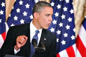 On Syria, Obama said the government "has chosen the path of murder and the mass arrests of its citizens." He praised the Syrian people for their courage in standing up to repression in a bloody crackdown that has killed hundreds.