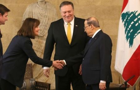 Pompeo’s remarks came after he met with Lebanese President Michel Aoun, Speaker Nabih Berri and Prime Minister Saad Hariri, in a flurry of bilateral talks that centered on Hezbollah, but also touched on U.S. support for the Lebanese Army and a dispute over Lebanon’s southern border with Israel.