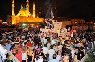 The biggest of all the demonstrations in support of the popular Syrian uprising so far, Lebanese activists met at 9 p.m in the center of Beirut to show their solidarity with the Syrian people.